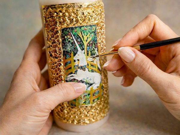 Unlike a canvas set apart on a wall, a candle enters life. It inhabits spaces fine art has rarely been invited to—resting on a piano, a bedside table, a quiet corner of a living room. It allows beauty to appear not only where it is expected, but in the hidden, intimate places where life is actually lived.
